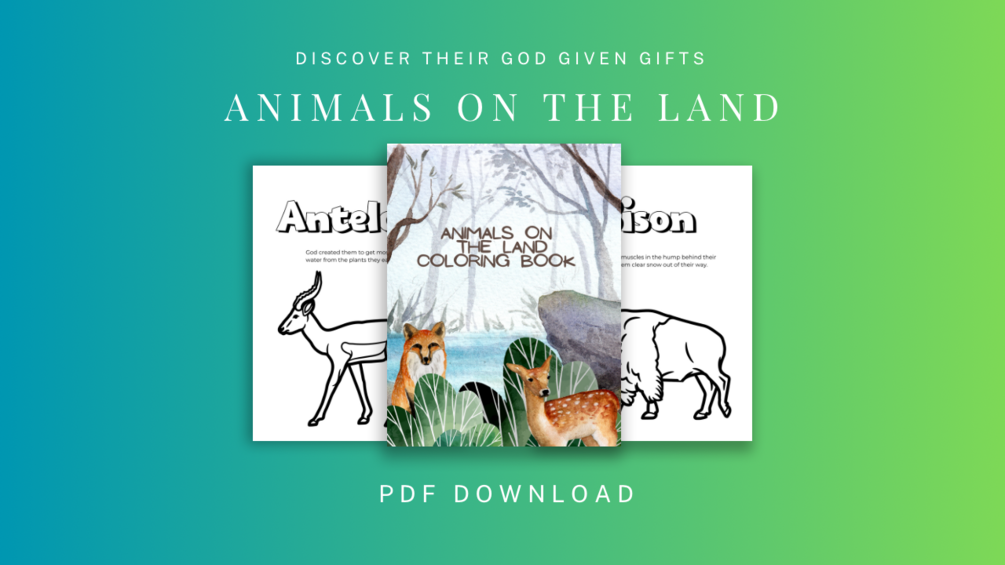 Embark on a captivating coloring expedition with "Animals on the Land," a delightful children's coloring book that unveils the remarkable world of terrestrial creatures and the unique features God designed for them to thrive in their diverse environments. As your child bring the pages to life with color, they'll learn about God's ingenious creation. Each illustration tells a story of divine craftsmanship, showcasing the beauty and variety of landscapes where these animals call home. The coloring activities not only inspire creativity but also foster an appreciation for the Creator's thoughtful design in crafting creatures to navigate the vast and varied terrains of our planet.